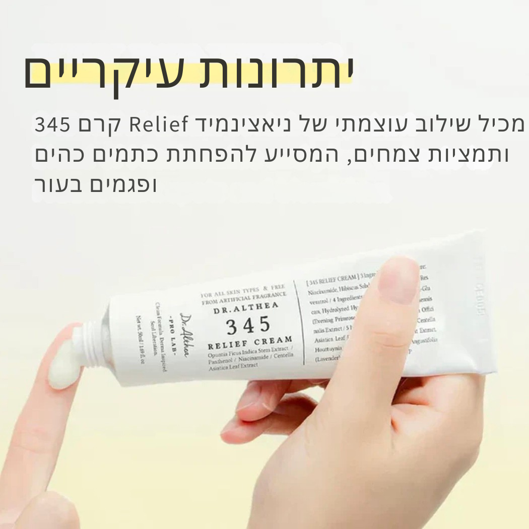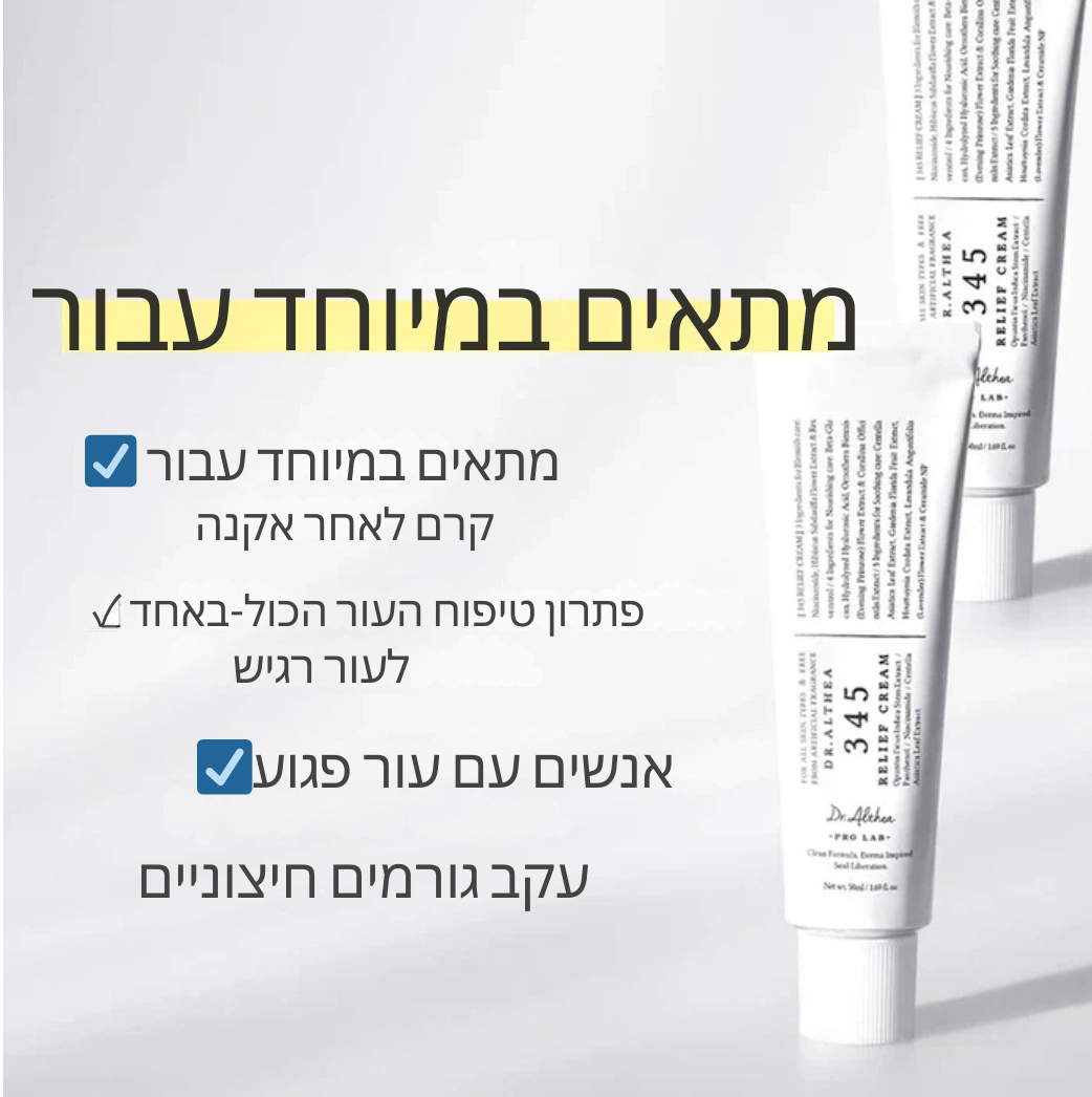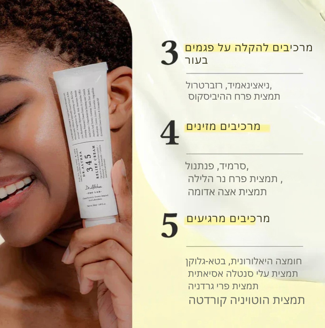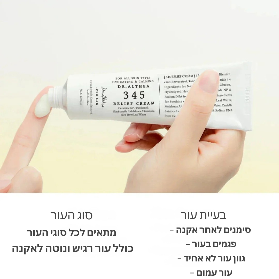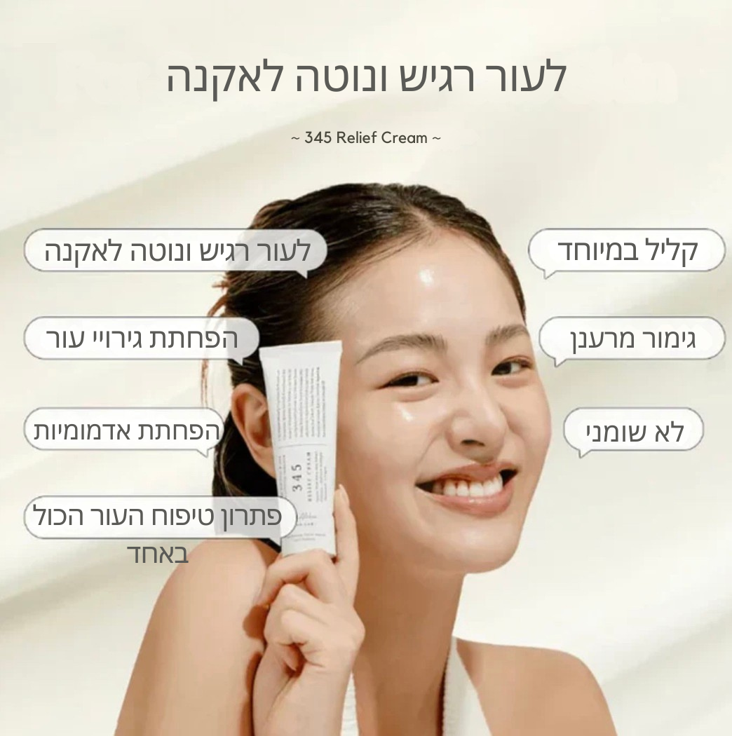🌿 למה קרם ה-345 מושלם עבורך? מפחית אדמומיות, משקם את מחסום העור עם 5 סוגי סרמידים, ומטפל בסימנים לאחר אקנה בעזרת ניאצינמיד.