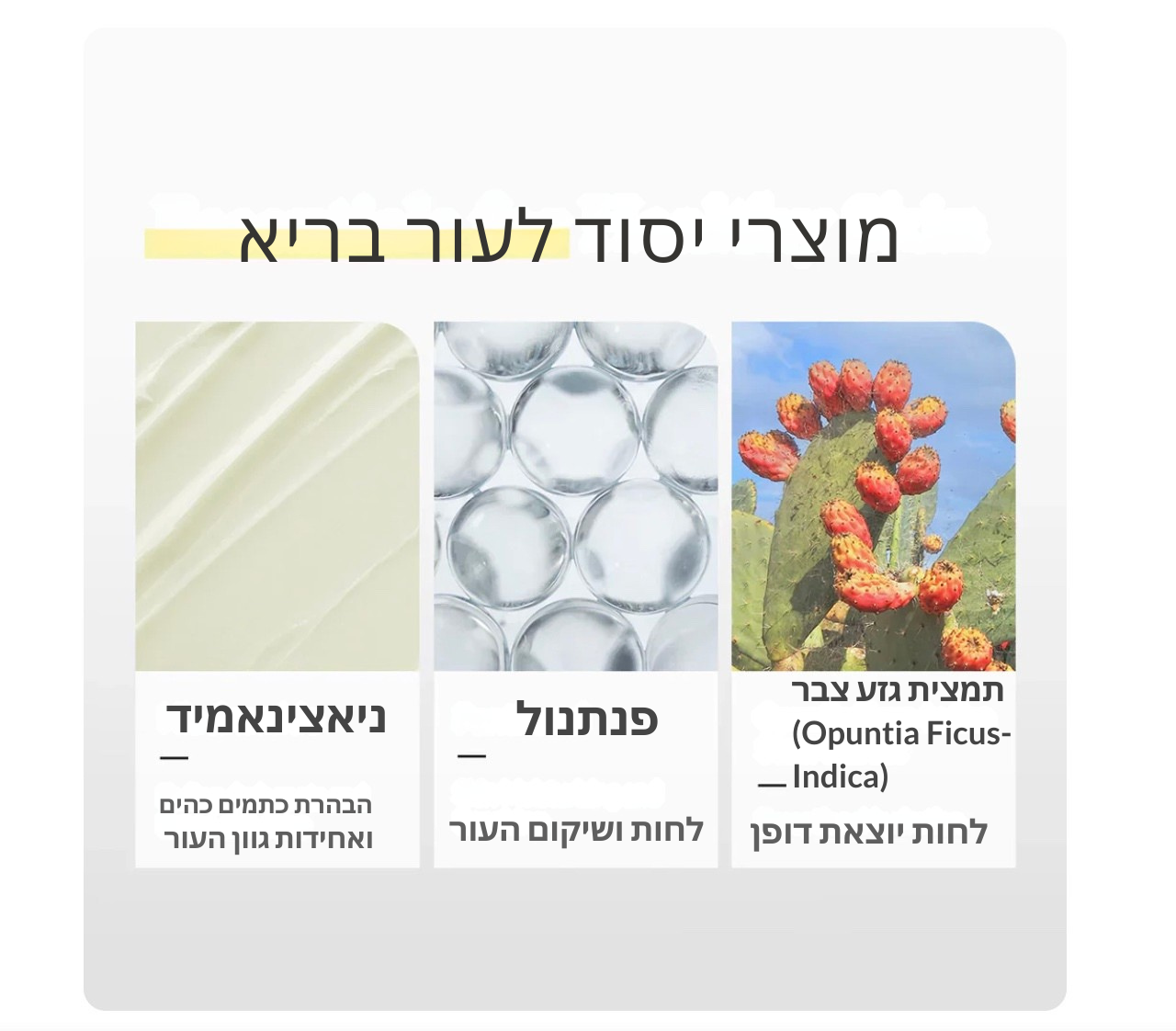 הפורמולה הייחודית מכילה 3 סוגים של חומצה היאלורונית 💧, 4 סוגים של תמצית סנטלה 🍃, ו־5 סוגים של סרמידים 🛡️,