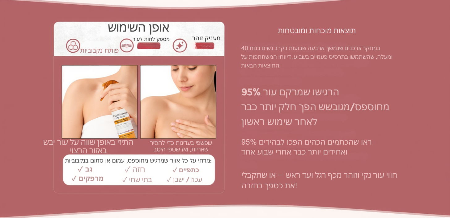 רבים מרגישים עור רך וחלק יותר כבר מהשימוש הראשון.