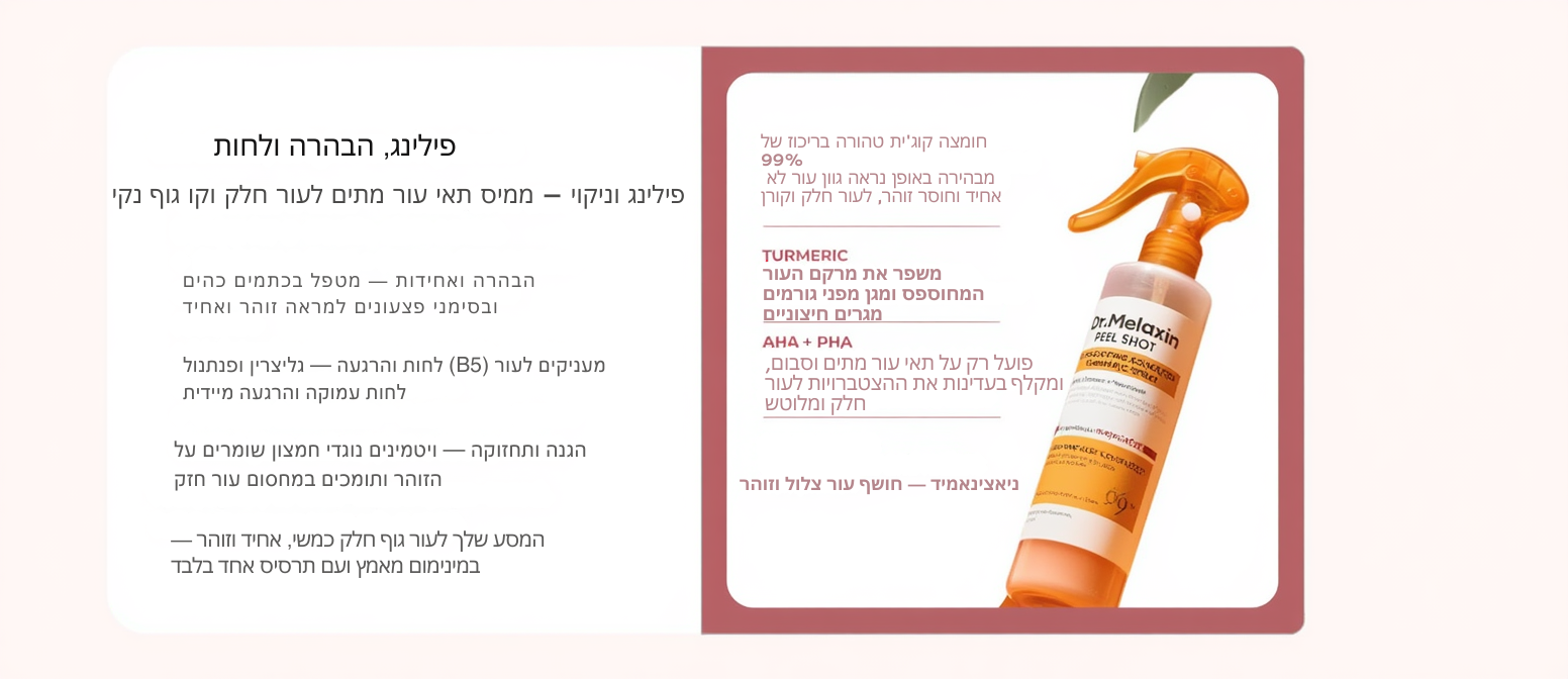 להתיז, לעסות, ולשטוף — בלי צריבה, בלי שפשוף, בלי זמן החלמה — רק עור חלק כמשי תוך דקות